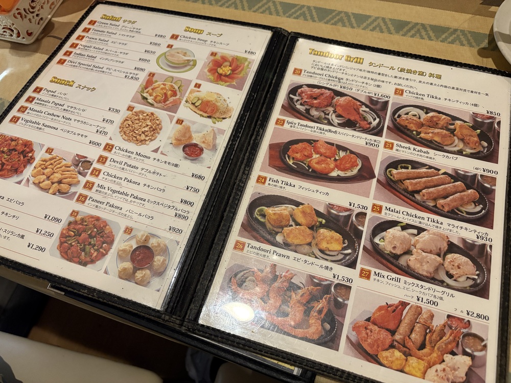 ランチだけでなく夜もインド&ネパール料理をいただけるこちらのお店では、カレーをはじめタンドリーチキン、シークカバブ、フィッシュティッカなど、本格的なメニューがずらり。