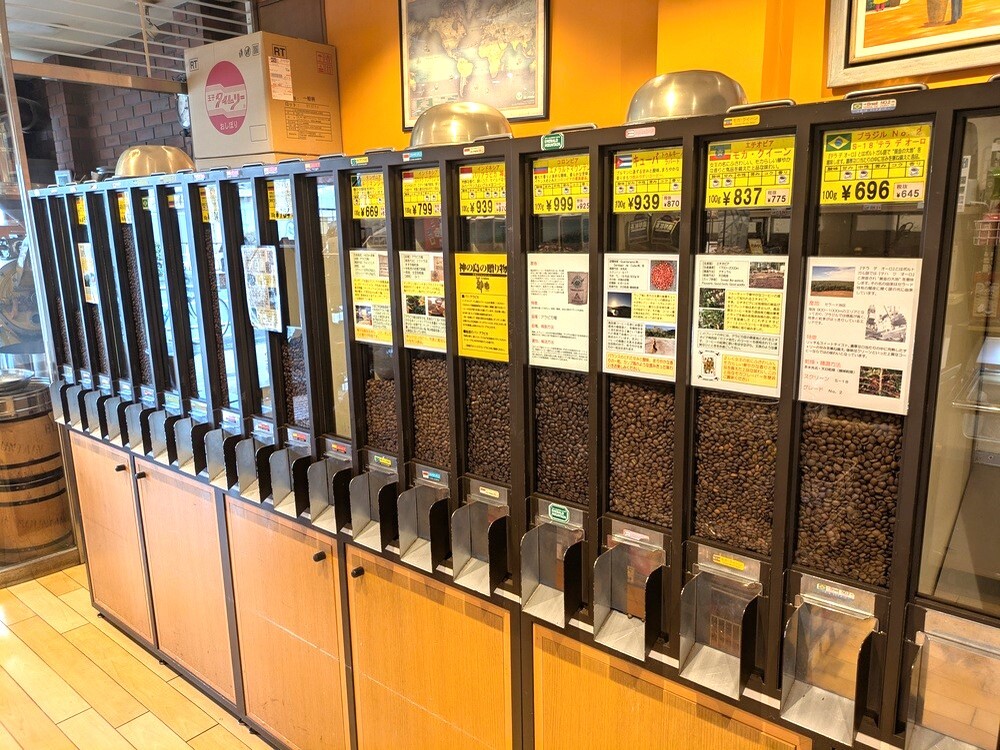コーヒーは自家焙煎されていて、カフェスペースとコーヒー豆販売スペースとに分かれています。