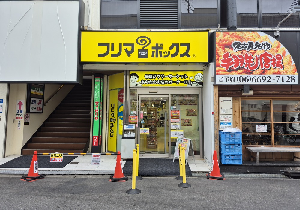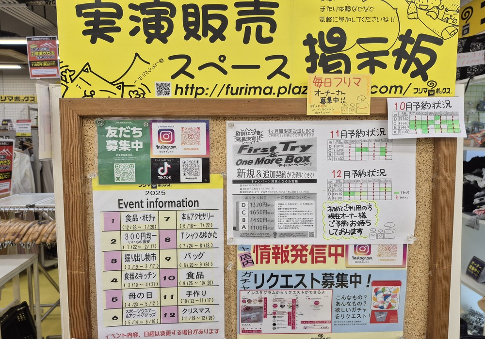 黄色い看板に、大きく「フリマボックス」と書かれているので、初めてでも迷う心配なしです。
