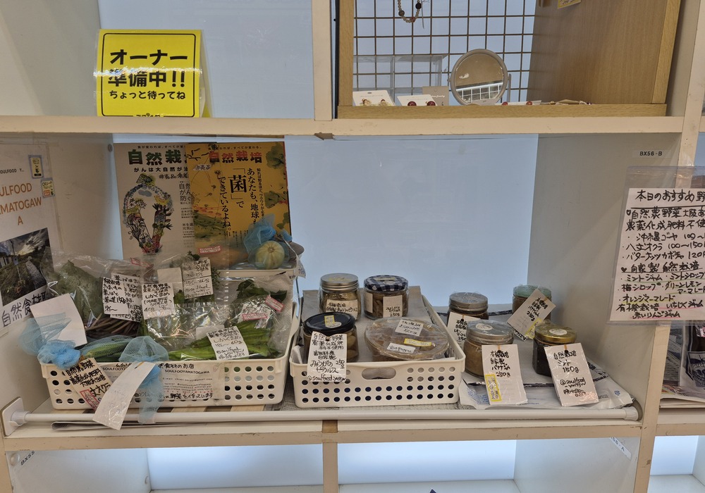 棚には新鮮な野菜やお味噌、加工品などがずらりと並び、まるで小さなマルシェのような雰囲気です。