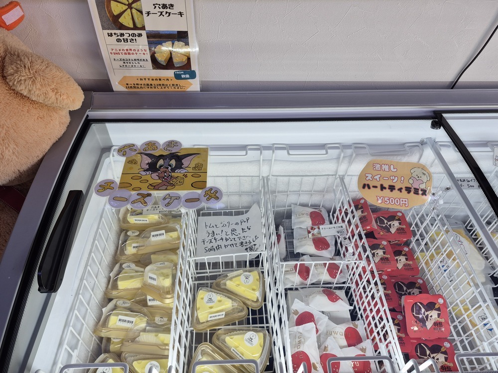 こちらのショーケースには、ハートティラミスと、なんと穴あきチーズケーキ!