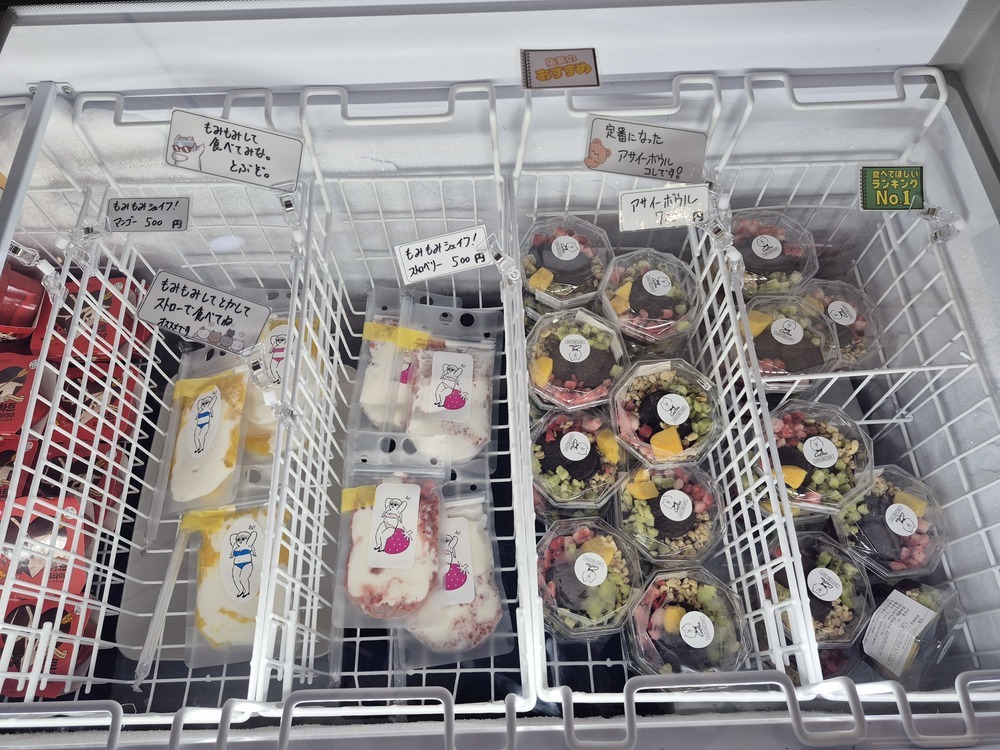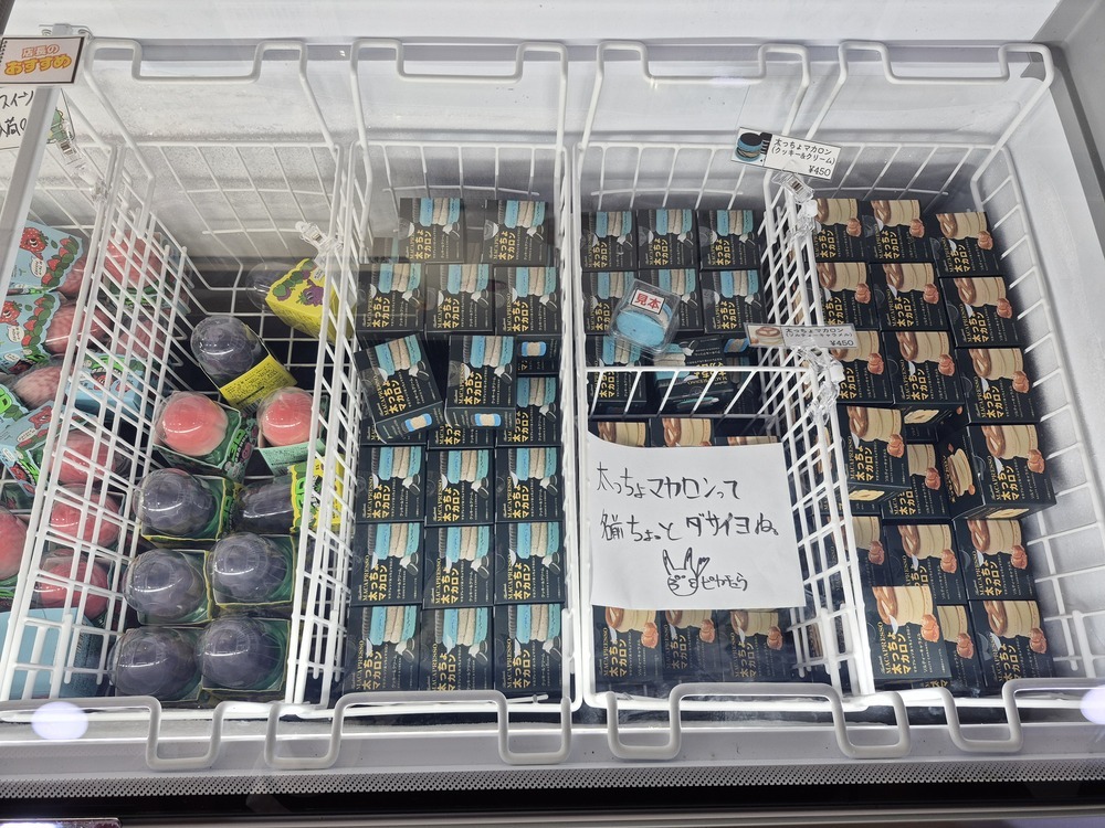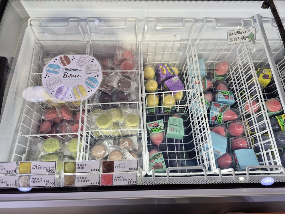 冷凍ショーケースがずらりと並び、その中には、全国各地のお菓子や、SNSで話題のスイーツがぎゅっと詰まっています。
