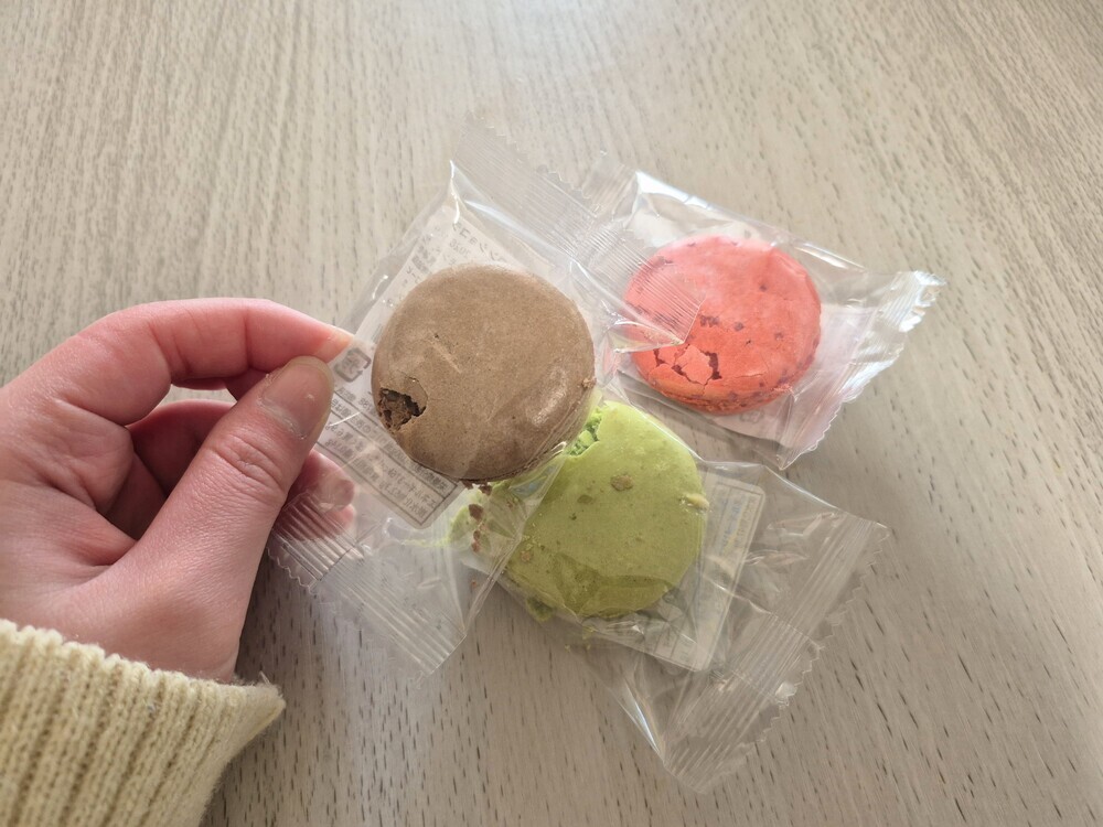 店長さんにうかがうと、マカロンの人気フレーバーは、ショコラ、ピスタチオ、フランボワーズとのこと。せっかくなので、私もその3つを購入することにしました。